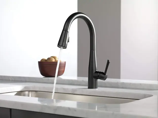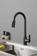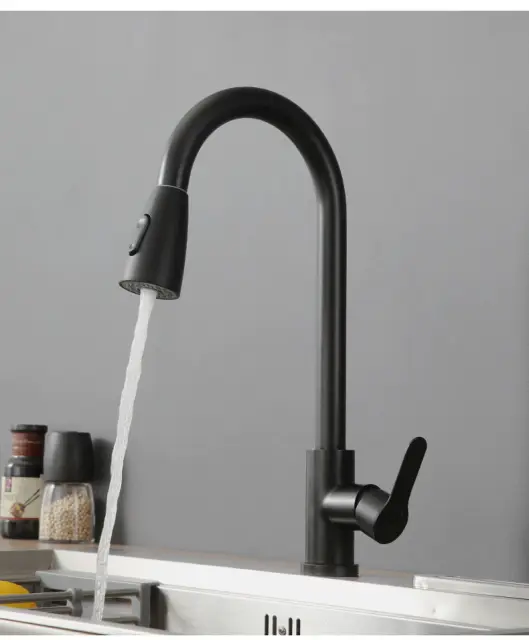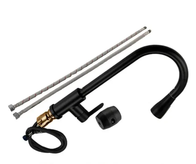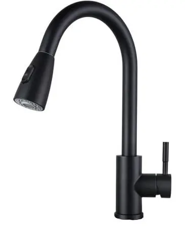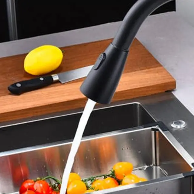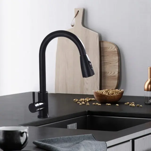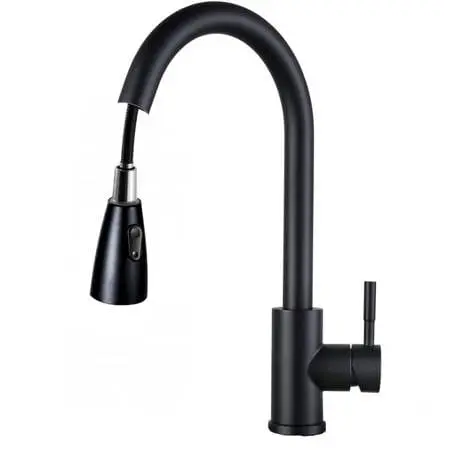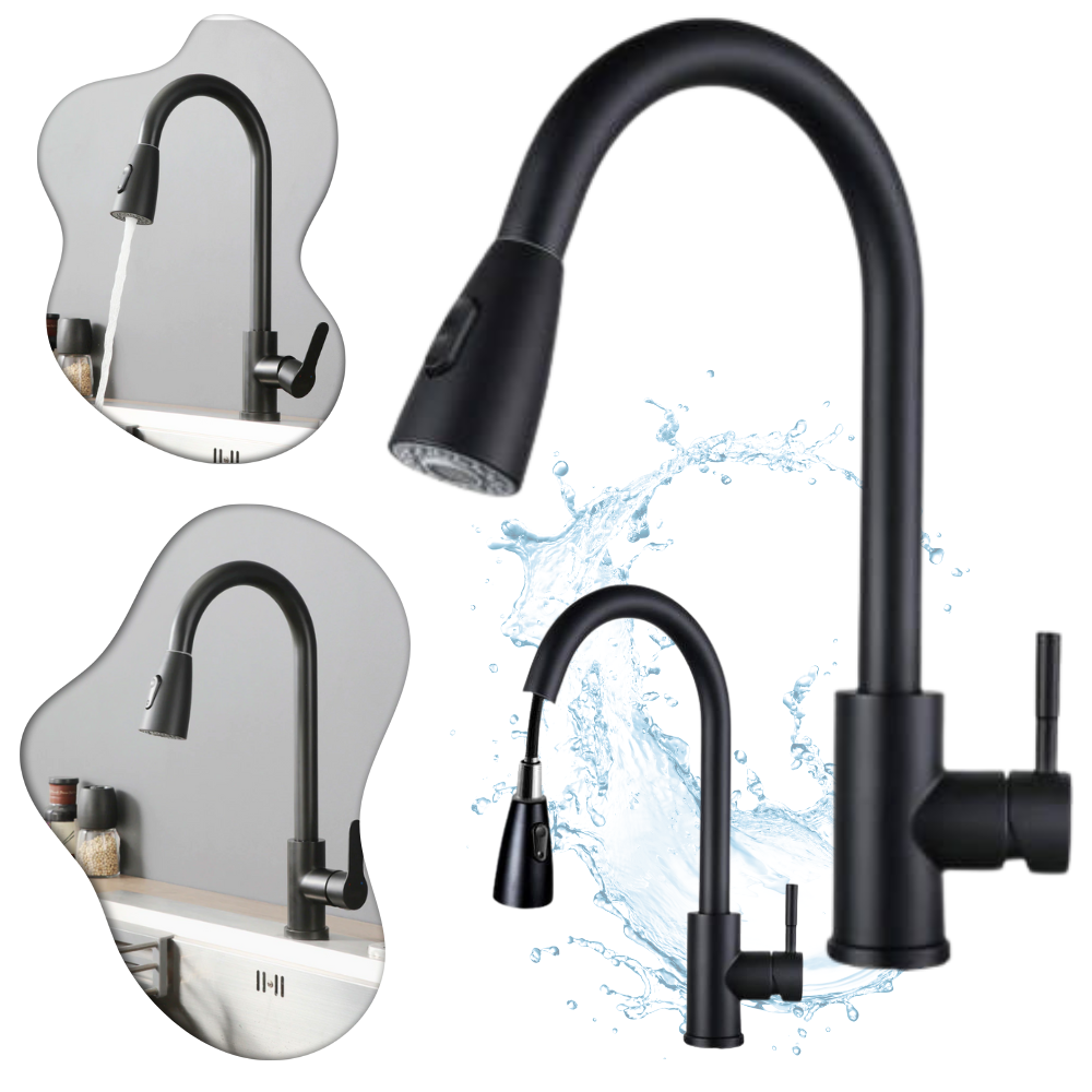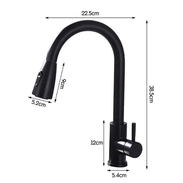Kuhinjska pipa, mat črna, izvlečni izliv, kuhinjsko korito