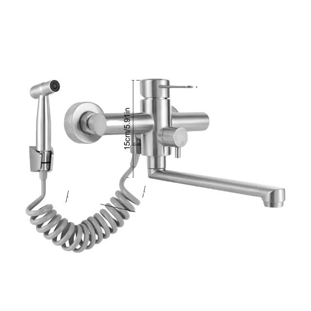 Kuhinjska pipa, montirana na steno, 360° rotacijska, trajna iz nerjavečega jekla, Srebrna, G1/2