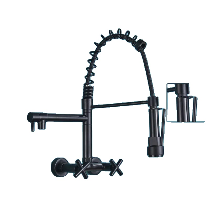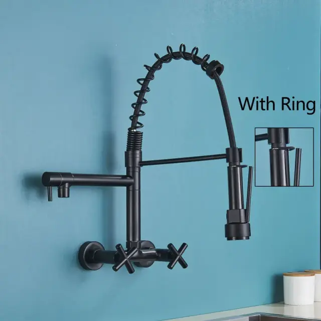 Kuhinjska pipa, stenska, 360-stopinjska rotacija, dvojni ročaj -Črna z obročem
