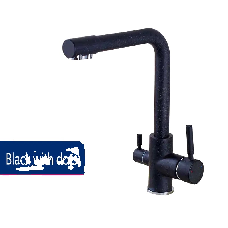 Kuhinjska pipa, trajen medenina, dvojni ročaj za vročo in hladno mešanje, črna s pikami