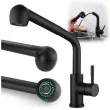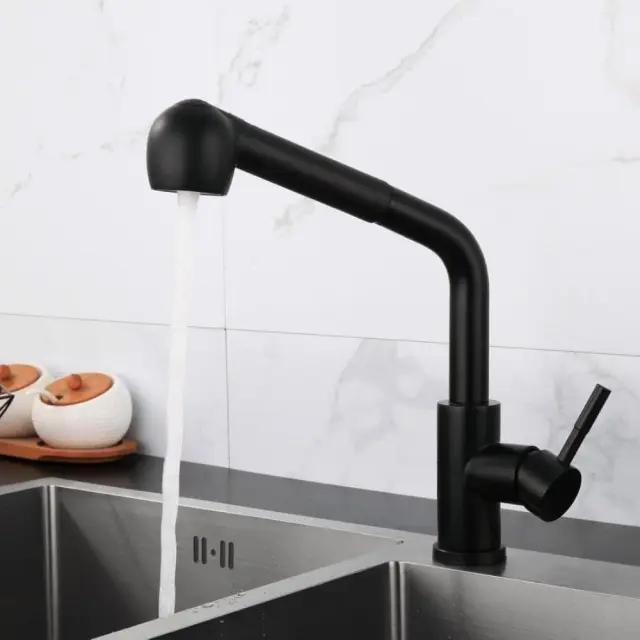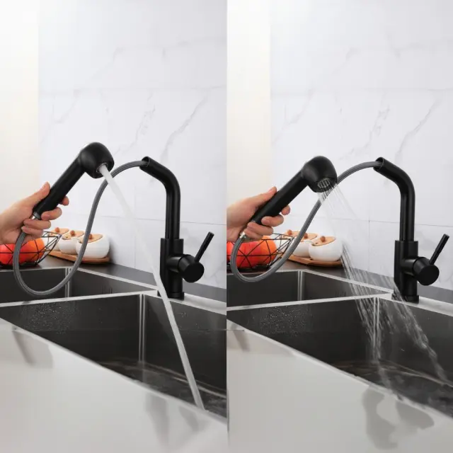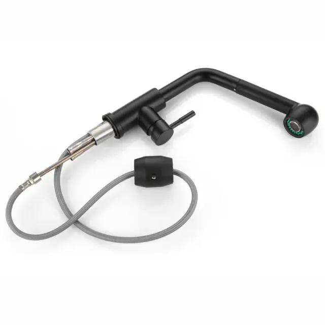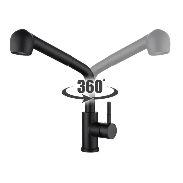 Kuhinjska pipa z izvlečnim izlivom 360°, črna, prostostoječa, za pomivalno korito