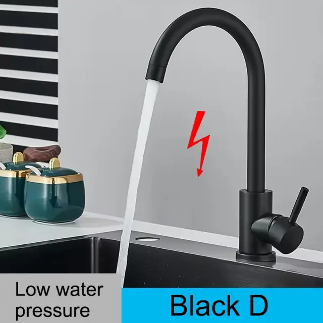 Kuhinjska pipa z nizkim vodnim tlakom, nerjaveče jeklo, 360-stopinjski vrtljiv, črna DY