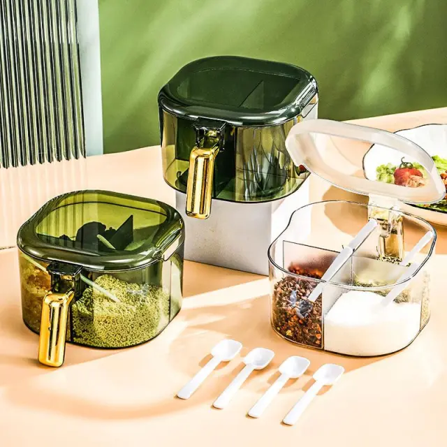 Izdelek: Škatla za začimbe Barva: prozorna, prosojna, prosojen material: plastika Lastnosti: ena polica, ena stvar, dizajn z več predelki, brez vonja