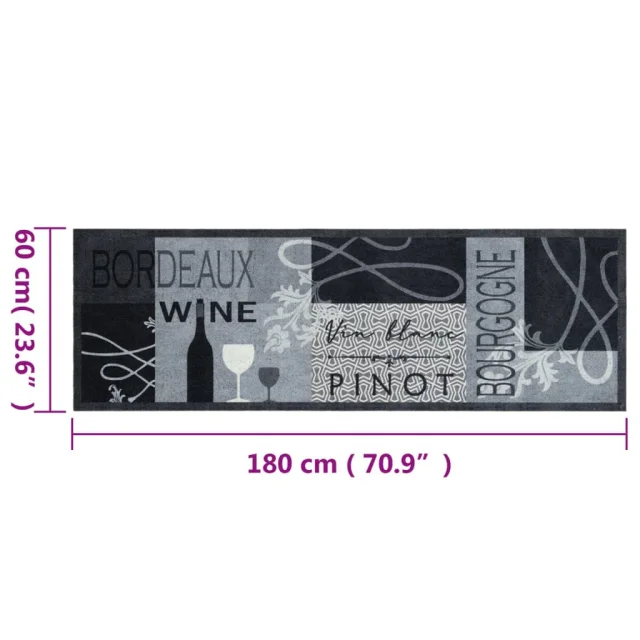 Kuhinjska Preproga, Rug pralna vino siva 60x180 cm žamet