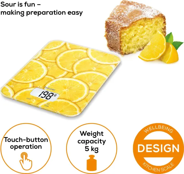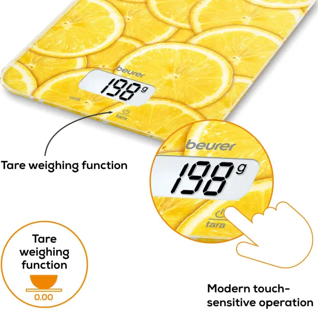 Kuhinjska tehtnica beurer 5 kg steklena površina z vzorcem limone