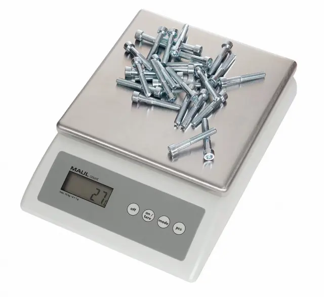 MAUL tehtnica za štetje je idealna za profesionalno uporabo v poštnih uradih in pošiljateljskih službah. Največja nosilnost tehtnice je 10 kg, kar omogoča natančno štetje enako težkih predmetov. Pladenj iz nerjavečega jekla je odstranljiv za enostavno čiščenje, ohišje pa je iz trpežne plastične mase, odporne na udarce. Enostavna je za uporabo zahvaljujoč funkcijam samodejnega ničljenja in tariranja. Popolna izbira za vsakodnevne potrebe tehtanja.