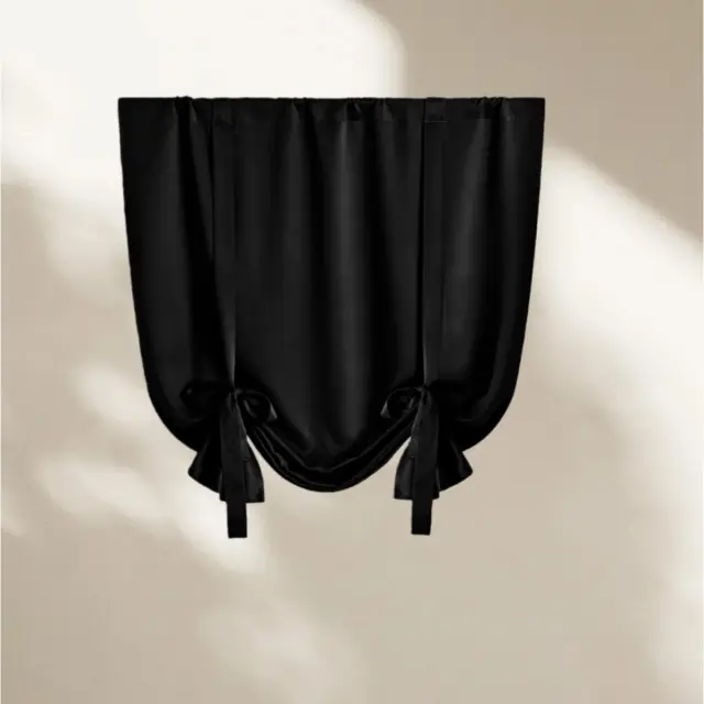Kuhinjska zatemnitvena zavesa iz goste tkanine v enobarvnem slogu Black S