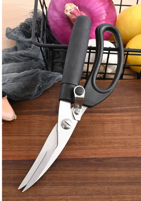 Ostra rezila: Te kuhinjske škarje imajo visokokakovostna rezila iz nerjavečega jekla, ki so natančno nabrušena in zagotavljajo enostavno rezanje različnih živil, od perutninskih kosti do zelenjave.