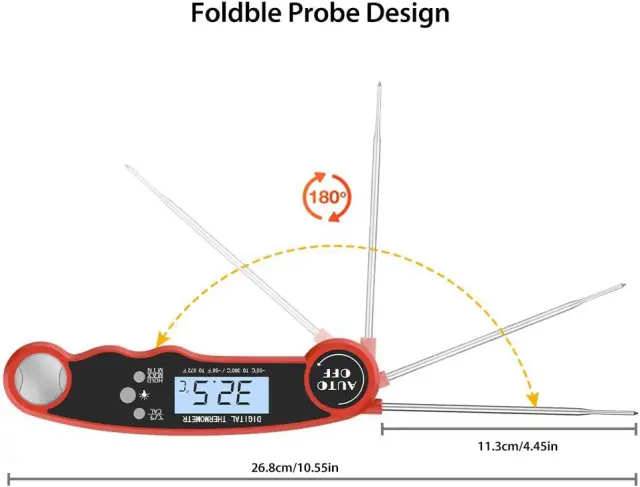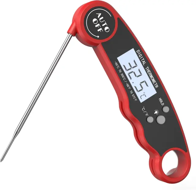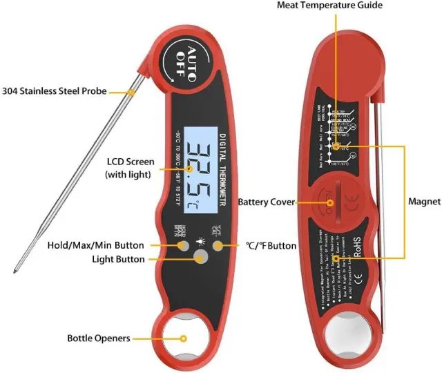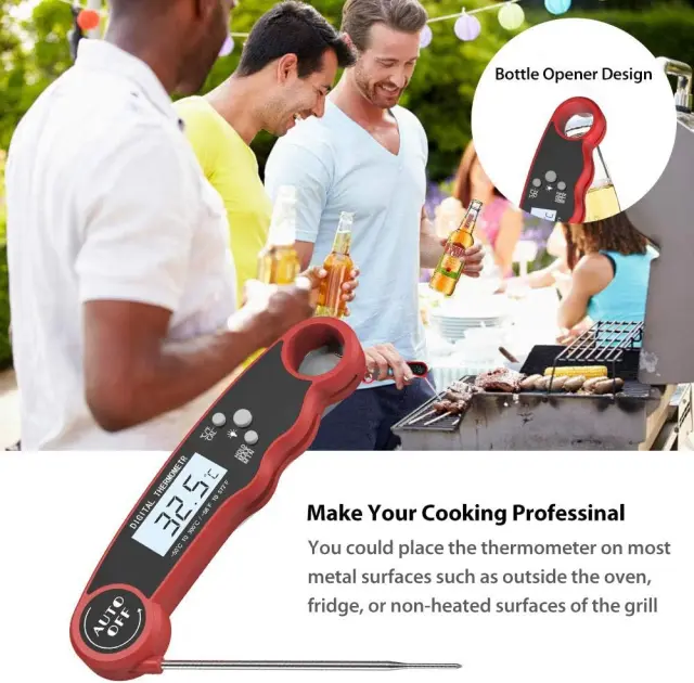 Kuhinjski digitalni termometer za meso svetlobno hiter IP67 vodotesen z odpiračem za steklenice, magneten, vrtljiv za 180°, rdeč
