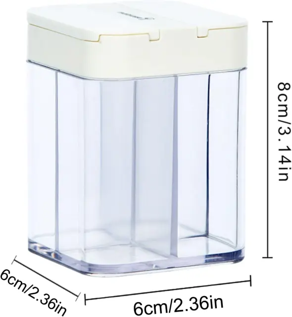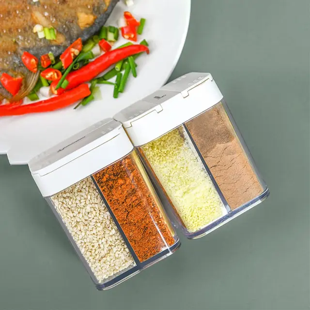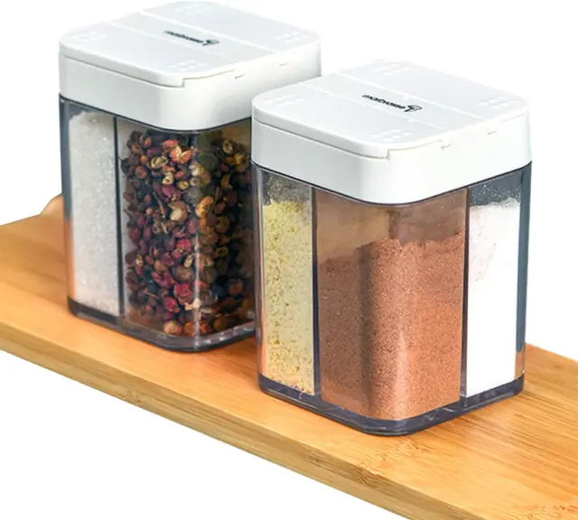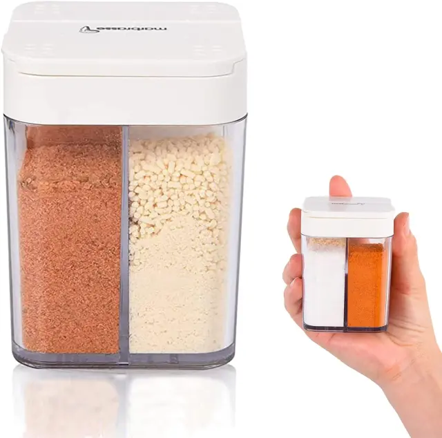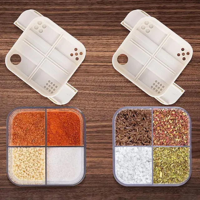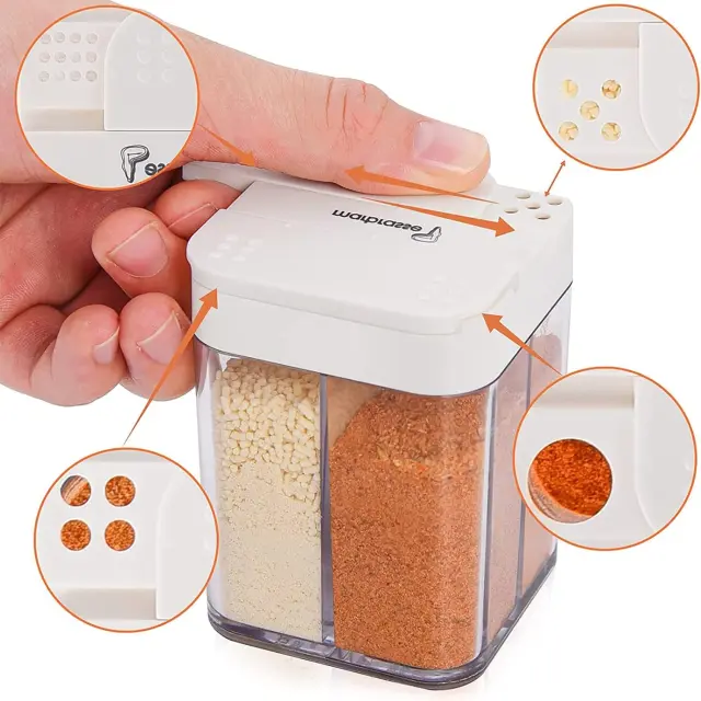 [Material] Izdelan iz materiala ABS+PET, higieničen za uporabo in je lahko v neposrednem stiku s hrano. Boljše tesnjenje, ohranja vašo dišavo dlje, okolju prijazno in za večkratno uporabo.【Zasnova 4 v 1】Kozarec za začimbe ima štiri predelke za shranjevanje različnih začimb in preprečevanje vonjav; enostavno lahko izberete količino soli, popra ali drugih začimb, ki jih želite dodati. Prihrani prostor in lahko zadovolji vaše potrebe po različnih začimbah.[Zasnova ustja steklenice] Ustje steklenice kozarca za začimbe ima mrežasto zasnovo. Omogoča enakomerno porazdelitev začimb, nadzor odmerjanja in filtriranje strnjenih začimb. Vsak del ima nastavljiv drsni zgornji pokrov. Z drsenjem pokrova se odločite, ali boste natočili ali zaprli.[Lastnosti] Glavni del kozarca za začimbe je prozoren za lažje opazovanje. Velikost kozarca za začimbe je 6*6*8 cm/2,36*2,36*3,15 palca. Je majhen, hiter za uporabo in odporen na vlago.[Širok spekter uporabe] Širok spekter uporabe, primeren za shranjevanje soli, popra, popra, sladkorja, koruznega škroba itd., primeren za pohodništvo, kampiranje, žar, dom, kuhinja itd.