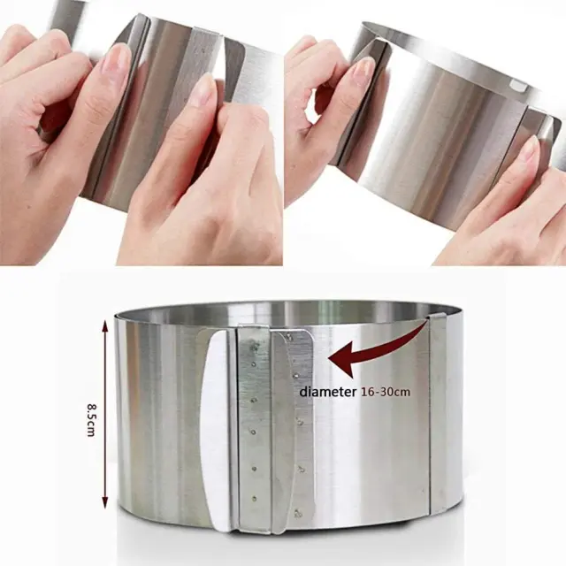 ✿ [Velikost nastavljiva] Zložljiv obroč za pecivo ima zložljiv ročaj, velikost pa je mogoče prosto prilagajati. Premer je nastavljiv od 16cm do 30cm. V krogu peciva je tehtnica in običajno uporabljene velikosti tort (16 cm/6,3", 18 cm/7", 20 cm/7,87", 22 cm/8,66", 24 cm/9,44", 28 cm/11"/, 30 cm/12 ") so definirane, priročno. Višina 8,5 cm / 3,34". Pri visokih in globokih modelih lahko izberete pravo višino glede na vaše potrebe za izdelavo tort različnih velikosti.