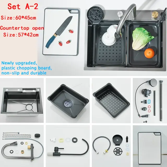 Kuhinjski pomivalnik z armaturami, velike možnosti velikosti, digitalni prikaz temperature, 60X45 Set A-