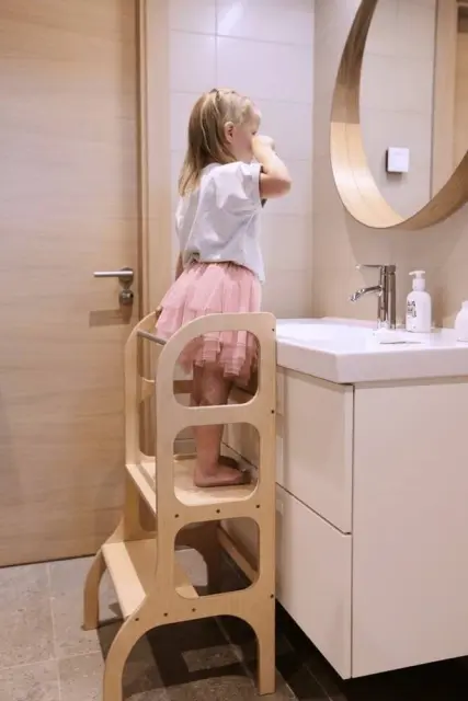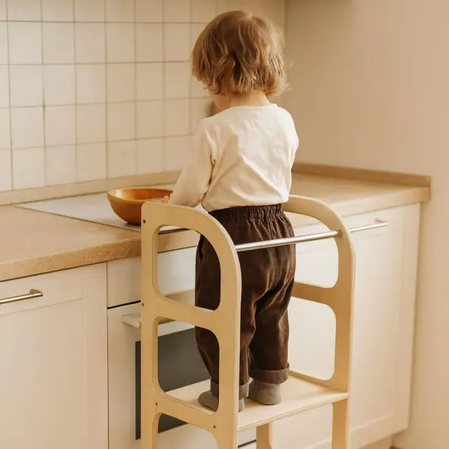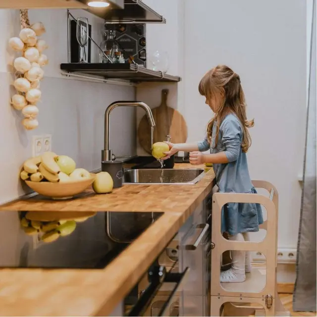 Kuhinjski Pomočnik Otroški učni stolp – stopničasti stolček Les