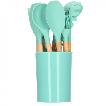 Kuchnia ni samo prostor za kuhanje. Tam vsak dan preživimo veliko časa, z družino ali prijatelji, ob pitju kave, čaja ali pripravi obrokov. Kuhinjski pripomočki nam pomagajo pri kuhi in pripravi hrane. Silikonski kuhinjski dodatki Modern Gadgets so dizajnerski in zelo funkcionalni. Set je sestavljen iz 12 elementov v mint barvi, ki bodo poleg svoje funkcionalnosti okrasili vsak interier. Prednost kuhinjskih dodatkov iz silikona ni le njihova estetika, temveč tudi udobje uporabe, saj so posode odporne na visoke in nizke temperature. Dovoljeno temperaturno območje je od -30 do 230 stopinj. Medtem se ročaji iz bambusovega lesa ne segrejejo, zato nam ni treba skrbeti za opekline. Praktična uporaba Silikonski dodatki ne vpijajo neprijetnih vonjav in se ne lepijo na površino. Prav tako jih je enostavno vzdrževati čiste. Vedro, v katerem se nahajajo pripomočki, ima posebno luknjo, ki omogoča vzdrževanje higiene in preprečevanje vlage. Kuhinjski pripomočki (razen metlice) imajo luknjo za obešanje na palico. V kompletu boste našli vse potrebne pripomočke za kuhanje: metlico, zajemalko, žlico, lopatko z luknjami, lopatko brez luknjic, lopatko za torto/testo, enostransko zaobljeno lopatko, žlico za testenine, čopič za metlico, cedilo/posnemalnik, klešče. Tehnični podatki: Blagovna znamka: Springos Barva: temna meta Material: silikon, bambus Število kosov: 12 Set vsebuje: Posoda - višina 16,5 cm, premer približno 11 cm Metlica - višina 25 cm, dolžina ročaja 10 cm, največja širina približno 6 cm Zajemalka - skupna višina 32 cm, dolžina ročaja 18,5 cm, globina zajemalke 4 cm Žlica - skupna višina 31,5 cm, dolžina ročaja 18,5 cm, premer Lopatka z luknjami - skupna višina 32 cm, širina lopatice 8 cm, dolžina ročaja 18,5 cm Lopatka brez lukenj - skupna višina 32 cm, širina lopatice 8 cm, dolžina ročaja 18, 5 cm Lopatka za torte / testo - skupna višina 31,5 cm, širina spatule 6,5 cm, dolžina ročaja 18,5 cm Spatula zaobljena na eni strani - skupna višina 32 cm, dolžina ročaja 18,5 cm Žlica za testenine - skupna višina 31,5 cm, dolžina ročaja 18,5 cm, širina cedila 6 cm Čopič za litje - skupna višina 27,5 cm, dolžina ročaja 18,5 cm Cedilo / skimmer - skupaj z luknjami višina 31,5 cm, dolžina ročaja 18,5 cm, širina žlice 7 cm Klešče - skupna višina 28 cm, prijemalni del 12,5 cm, širina sponke 3,5 cm Šifra izdelka: KI0001