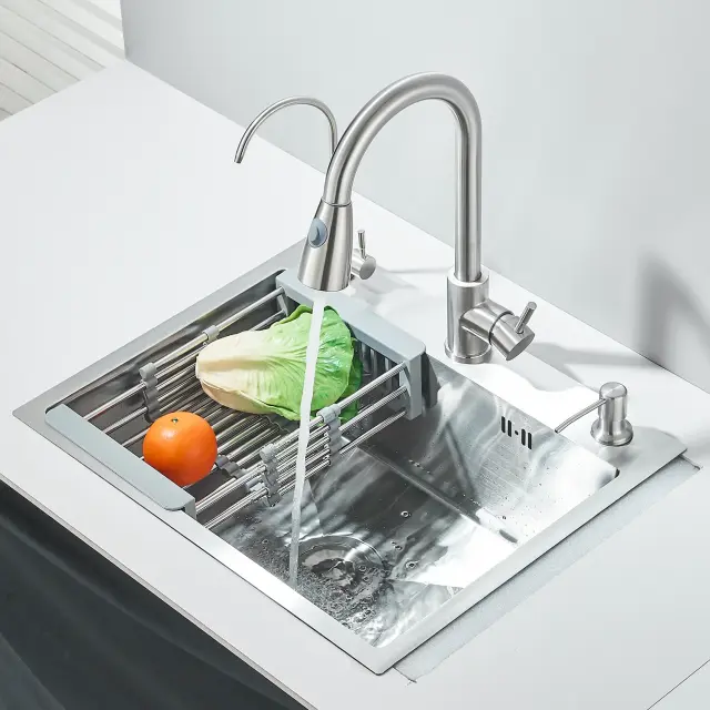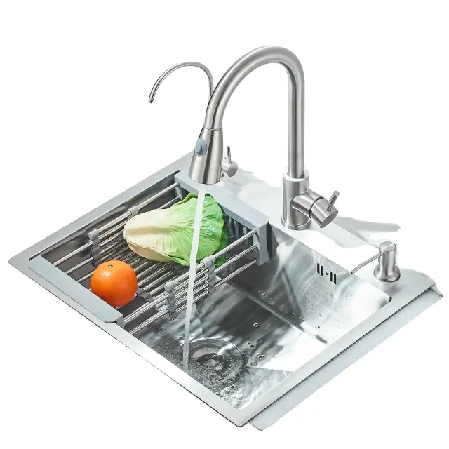 • Trajna konstrukcija: Izdelan iz visokokakovostnega nerjavečega jekla, je ta umivalnik zasnovan za dolgotrajno uporabo, odporen proti rji in koroziji ter zagotavlja leta zanesljive uporabe.