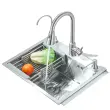 • Uporabniku prijazne funkcije: Opremljen s praktičnimi elementi, kot sta koš za odtok in vgrajena pipa, ta umivalnik izboljša vašo kuhinjsko izkušnjo, saj olajša naloge.
