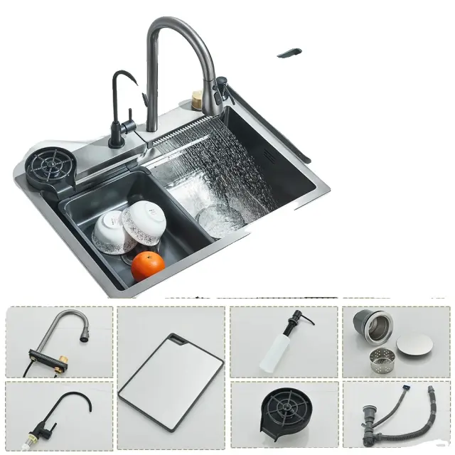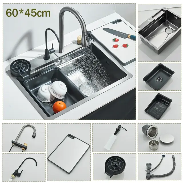 • Popoln komplet: Vključuje pipo, dozirnik za milo in pralnik za skodelice, da pokrije vse vaše kuhinjske potrebe v enem paketu.