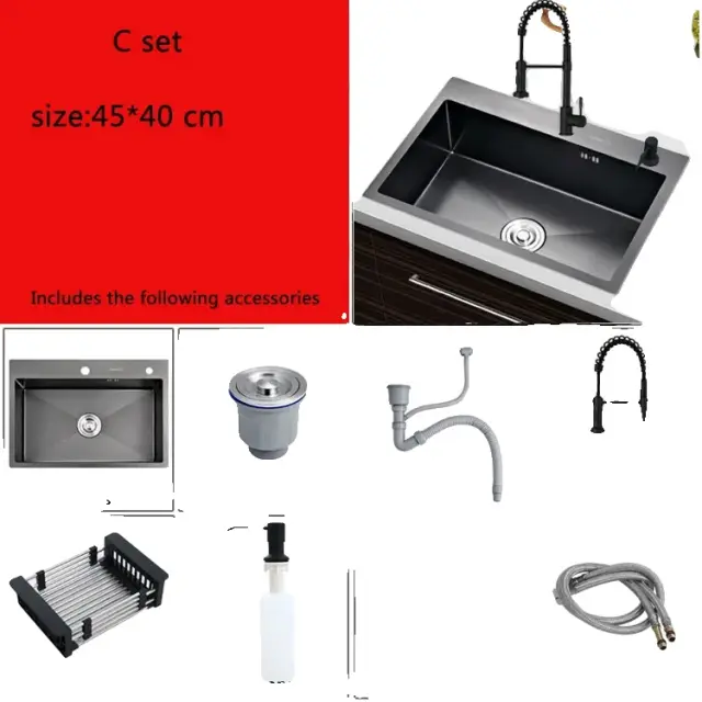 • Uporabniku prijazne funkcije: Vključuje mehke cevi za prilagodljivo namestitev, dozirnik za milo za udobje in košarico za organizirano shranjevanje pribora.