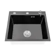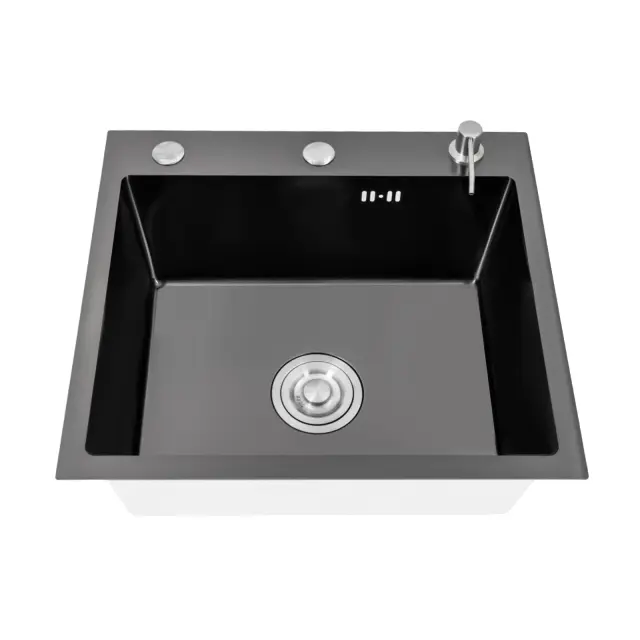 Kuhinjski umivalnik, vgrajen, dozirnik za milo, enojna posoda -črna