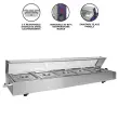 Napolnite pet ponvic GN 1/2 s svojo hrano in pustite, da stekleni zaslon prikaže vaše recepte, tako da lahko stranke izberejo, kar želijo. Zaradi steklene plošče je tudi gostinska bain marie popoln kraj za postrežbo hrane in pomaga preprečevati navzkrižno kontaminacijo.