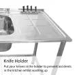 * Držalo za nože z odcejalno desko pomaga preprečiti nesreče v kuhinji med pomivanjem.