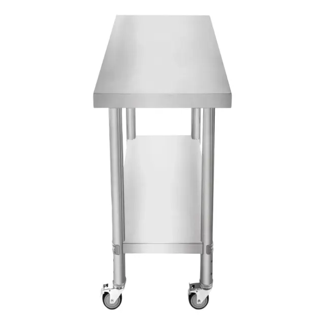 Ta miza, izdelana iz vrhunskega nerjavečega jekla 201, ponuja izjemno trdnost in vzdržljivost, zaradi česar lahko prenese pogosto uporabo v zahtevnih komercialnih kuhinjah. Gladka površina omogoča lažje čiščenje, kar je kot nalašč za okolja, kjer je treba vzdrževati visoko raven higiene hrane. Njegov eleganten, poliran videz mu ne daje le profesionalnega videza, ampak se bo tudi brezhibno zlil z okoliško kuhinjsko opremo.