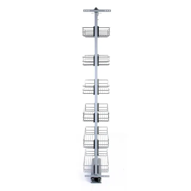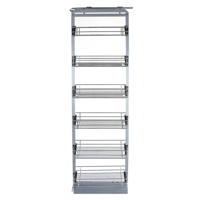 * Mere vsake košare: 440 mm D x 252 mm Š x 75 mm V (skupaj 6 košar) Povečajte prostor za shranjevanje v vaši majhni ali veliki kuhinji z višinsko nastavljivo shrambo, ki vam omogoča enostaven dostop do vseh predmetov.