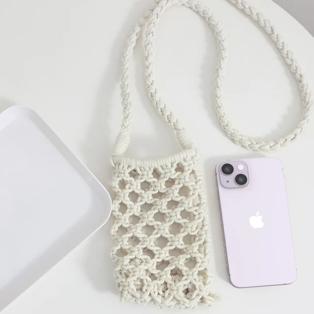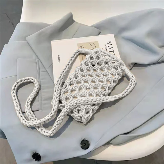 Kvackana pletena naramna torba za pametni telefon, serija TressBag - bela
