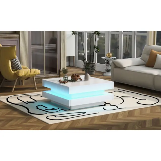 Kvadratna klubska mizica, bela, z Bluetooth LED osvetlitvijo, 70x70x36 cm