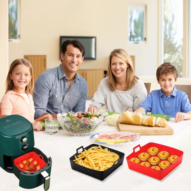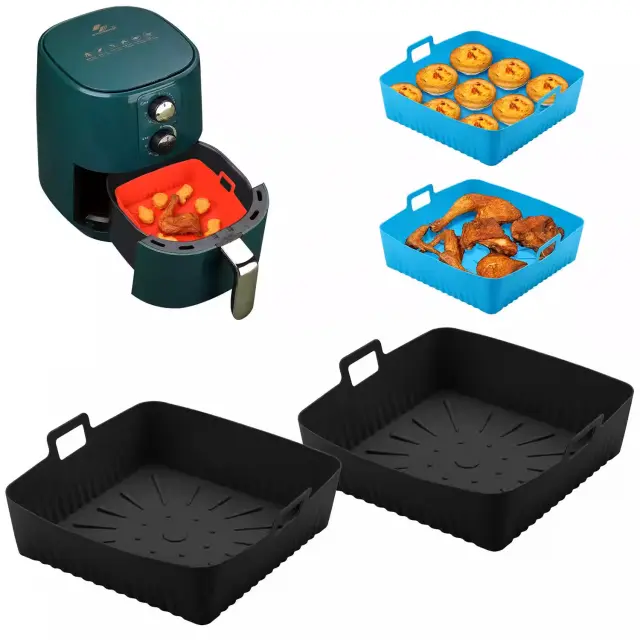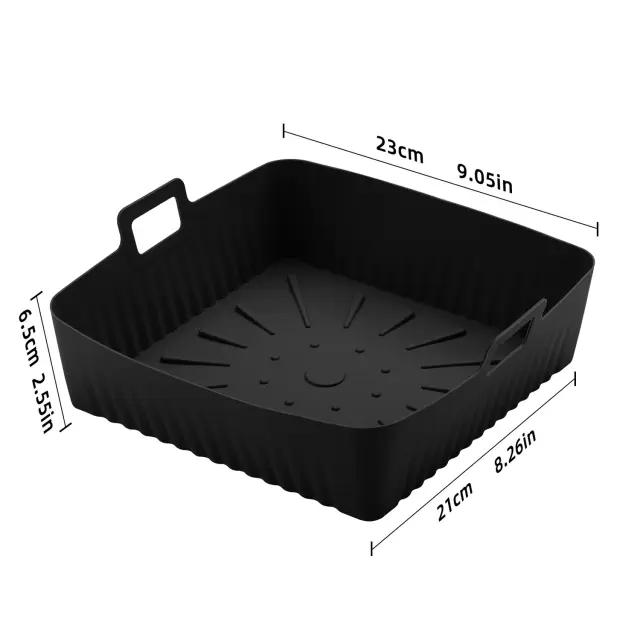 Ščiti vaš Airfryer: Če hrano postavite v posodo, se izognete lepljivim in zažganim ostankom v vašem Airfryerju. Skleda ima praktičen dizajn z visokim robom. Olajša tudi jemanje hrane v cvrtnik in iz njega. Posoda za hrano je primerna tudi za uporabo v mikrovalovni pečici.