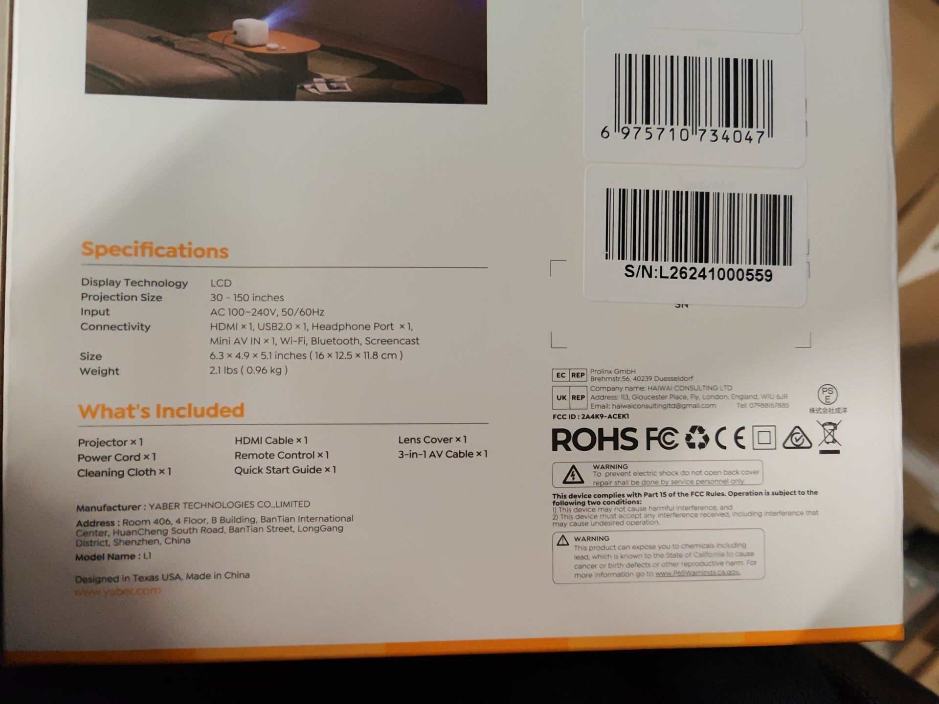 MAKSIMALNA VELIKOST PROJEKCIJE [INCH,CM]