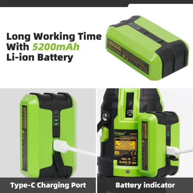 Delovna razdalja (linija): 30 m / 98 ft, do 60 m / 197 ft z laserskim sprejemnikom Huepar (ni priložen)