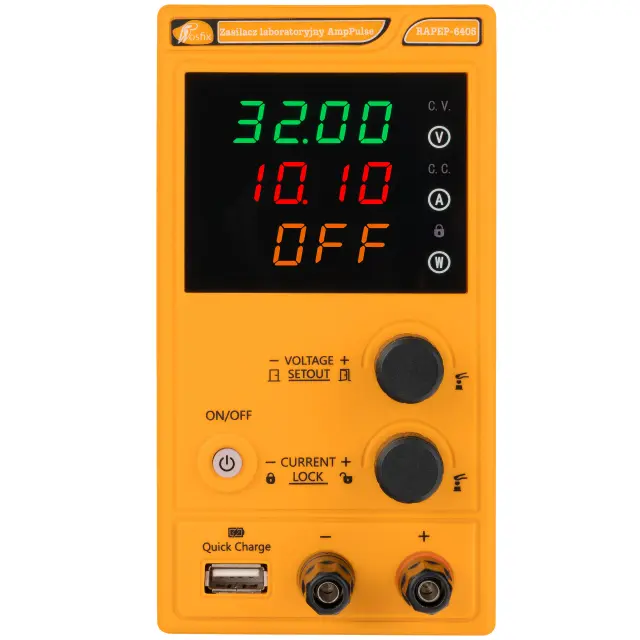 Rosfix AmpPulse RAPEP-6405 Laboratorijski Napajalnik – 64V 5A, Visoka Natančnost, USB QC | 150×80×230 mm