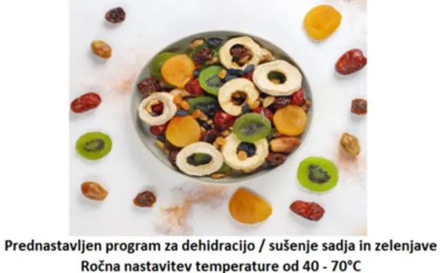 - 1 prednastavljeni program za dehidracijo / sušenje