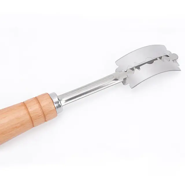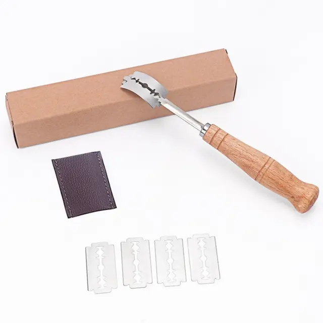 Ukrivljeno rezilo: Profesionalno ukrivljeno rezilo iz 304 nerjavečega jekla omogoča natančne površinske zareze, ki usmerjajo razširjanje testa in izboljšajo skorjo ter videz kruha. Predstavljajte si, da pri peki doma ali v majhni pekarni z enim gladkim zamahom ustvarite čiste, dosledne zareze na sourdough hlebcih ali bagetah, kar vodi do bolj kontoliranega oven springa in estetsko urejenih vzorcev na pečenih izdelkih.