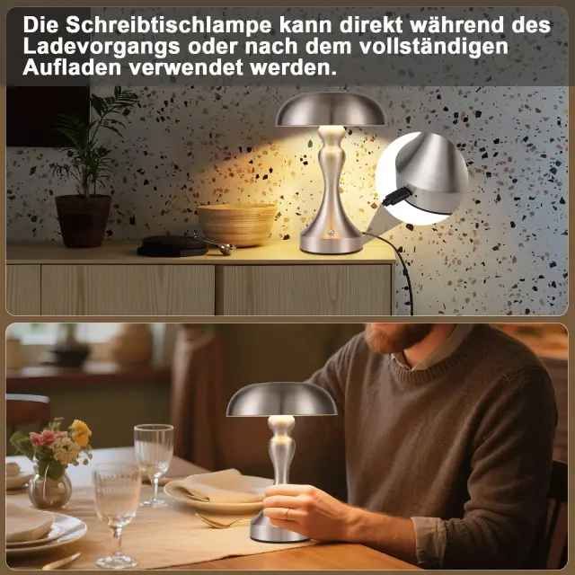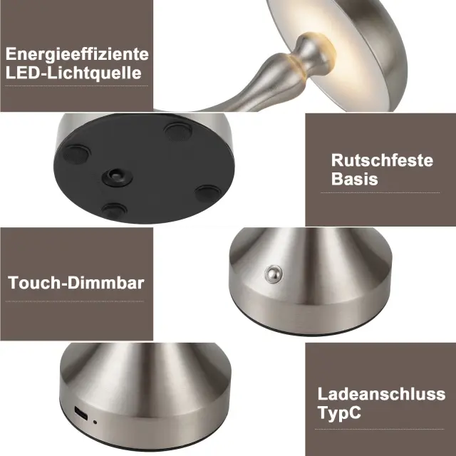 Lampe de chevet LED NETTLIFE tactile, intensité variable, sans fil, rechargeable par USB, style vintage