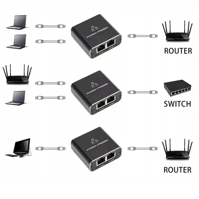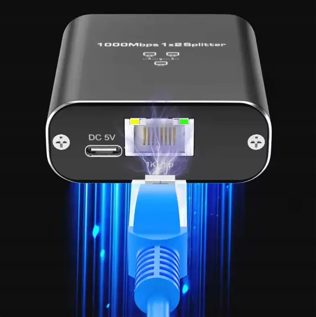 Razdelilnik LAN signala z 1 do 2 kabloma RJ45. Naprava omogoča delitev Ethernet signala ob ohranjanju hitrosti prenosa podatkov do 1000 Mb/s (1 Gb/s). Deluje z omrežnimi kabli različnih vrst in kategorij. Ima dva načina delovanja (kompresija signala iz dveh na en LAN kabel in standardna ločitev). Poceni in praktična rešitev v odsotnosti obsežne omrežne infrastrukture.