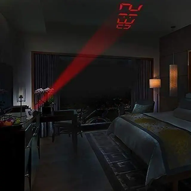 - Laserski prikaz časa na stropu ali steni omogoča, da enostavno preverite uro brez obračanja ali iskanja budilke.