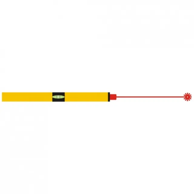 Laserski kazalec, ki se uporablja v vodni tehtnici, projicira laserski žarek na izravnano površino.