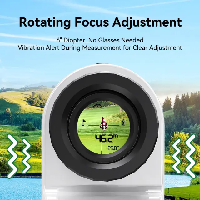 Uporabniku prijazna zasnova: vrtljivi okular omogoča enostavno ostrenje in zagotavlja udobno izkušnjo gledanja. Njegova lahka in kompaktna oblika omogoča enostavno prenašanje, medtem ko dolgotrajna baterija 1000 mAh zagotavlja do 800 ur neprekinjene uporabe. Funkcija samodejnega izklopa po 10 sekundah nedejavnosti varčuje z energijo in zagotavlja, da je vaš daljinomer vedno pripravljen, ko ga potrebujete.