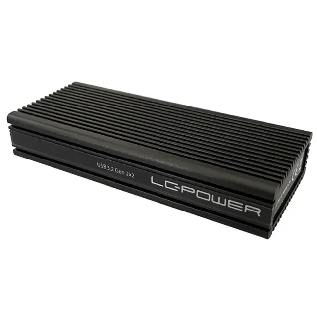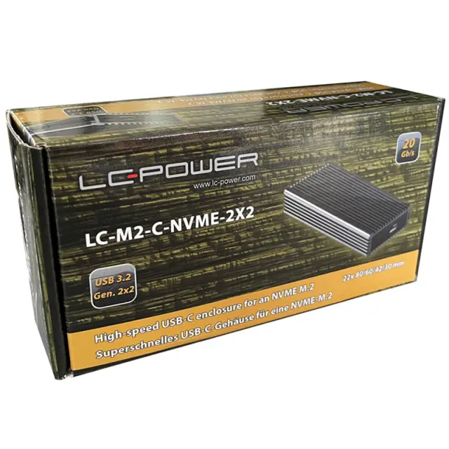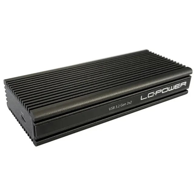 LC-POWER LC-M2-C-NVME-2X2 M.2 SSD USB Tip-C 3.2 Gen2 za M.2 SSD diske ima zunanjo ohišje moderen eleganten dizajn in je narejeno iz aluminija za odlično odvajanje toplote. USB 3.2 priključek tipa C nudi izredno hitrost prenosa podatkov do 20 Gbs.