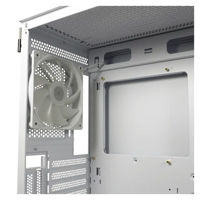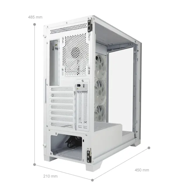 Prostorna notranjost ohišja LC-806W-ON omogoča enostavno namestitev komponent ter podpira več ventilatorjev in RGB osvetlitev za optimalno kroženje zraka in privlačen vizualni učinek. Ohišje je primerno za intenzivne gaming seanse, multimedijsko uporabo in zmogljive PC konfiguracije.