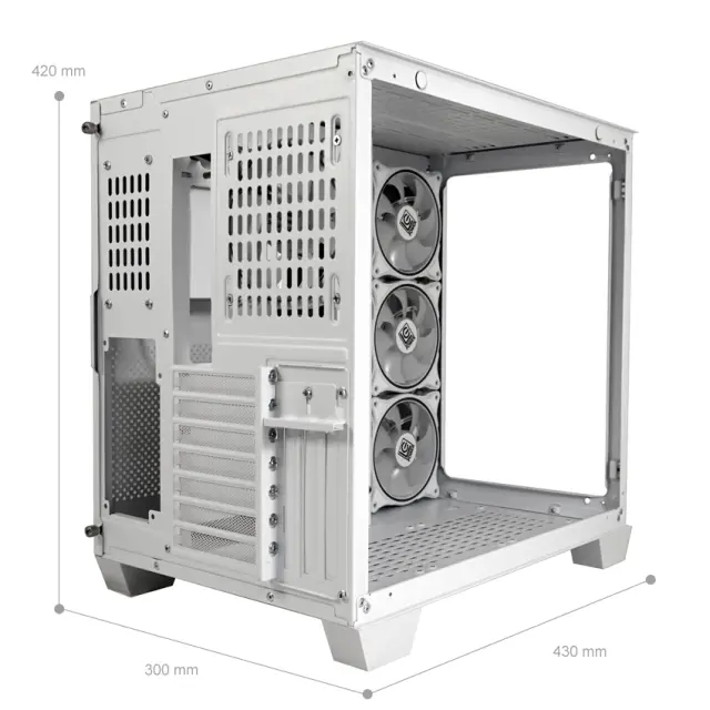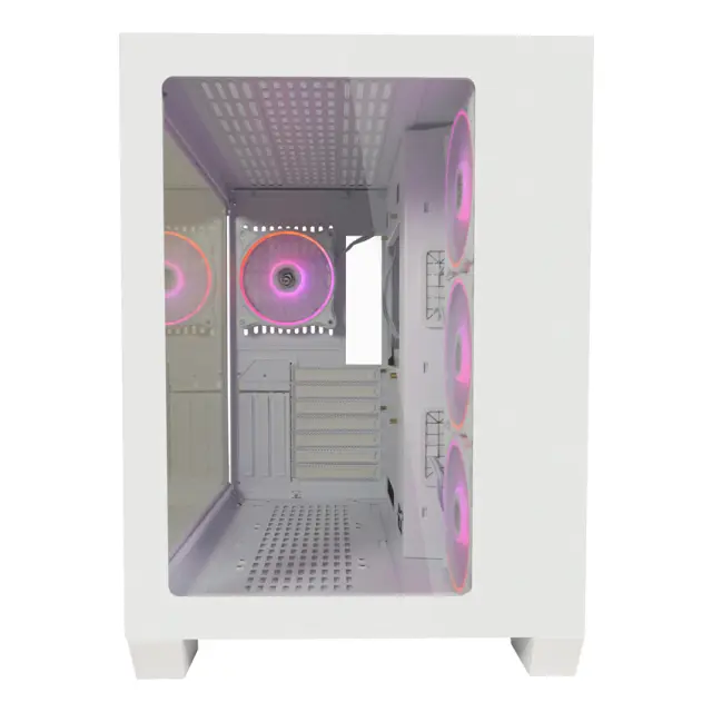 Prostorna notranjost ohišja LC-807W-ON omogoča enostavno namestitev komponent ter podpira več ventilatorjev in RGB osvetlitev za optimalno kroženje zraka in privlačen vizualni učinek. Ohišje je primerno za intenzivne gaming seanse, multimedijsko uporabo in zmogljive PC konfiguracije.