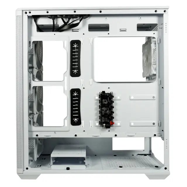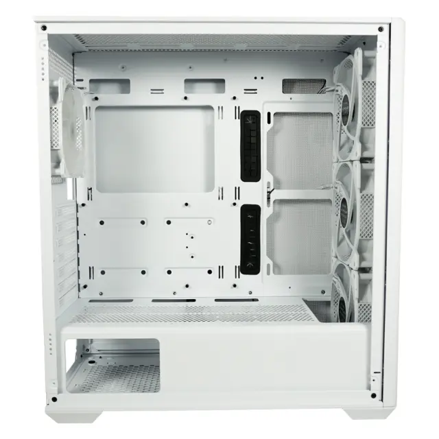 Prostorna notranjost ohišja LC-811W-ON omogoča enostavno namestitev komponent ter podpira več ventilatorjev in RGB osvetlitev za optimalno kroženje zraka in privlačen vizualni učinek. Ohišje je primerno za intenzivne gaming seanse, multimedijsko uporabo in zmogljive PC konfiguracije.