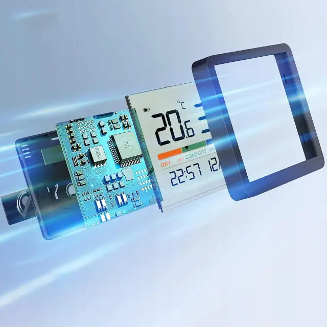 Na zaslonu lahko preverite trenutno temperaturo in vlažnost zraka , kar vam omogoča natančno oceno razmer v zgradbi.