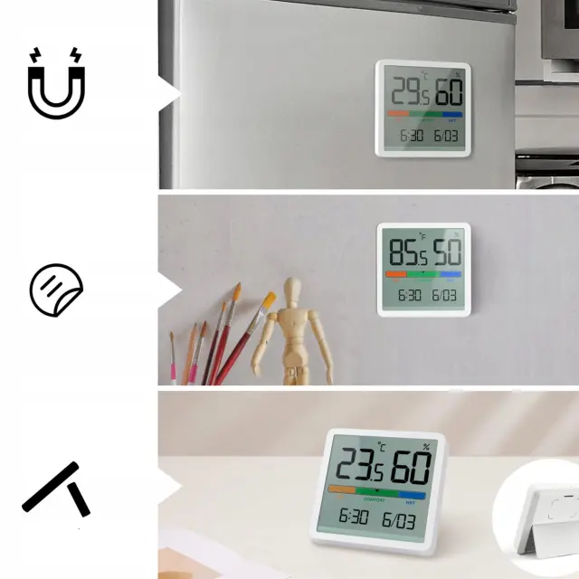 Zahvaljujoč vgrajenemu magnetu ga lahko preprosto in varno namestite na katero koli magnetno površino, na primer na hladilnik ali kovinsko ploščo.