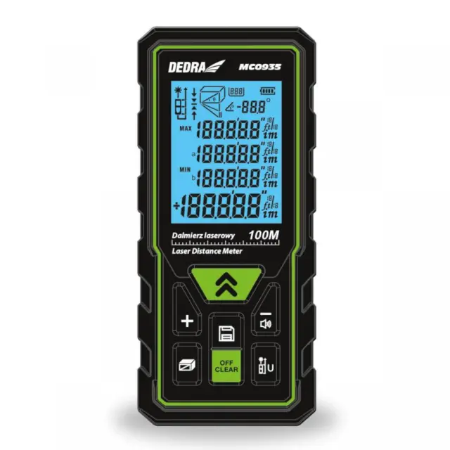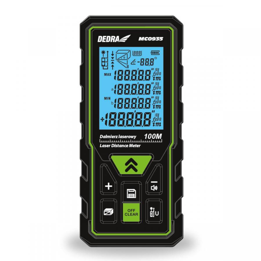 Razpon meritve z laserskim daljinomerom je od 5mm do 100m s senzacionalno natančnostjo ±2mm/10m, kar daje zelo visoko natančnost v primerjavi s standardnimi merilnimi metodami, čas merjenja pa je neprimerljivo krajši.