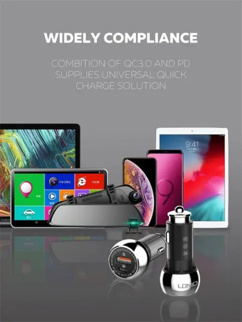LDNIO C1, USB + USB-C, PD + QC 3.0, 36W (črn) avtopolnilec
