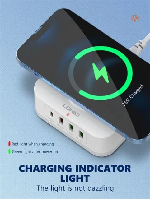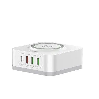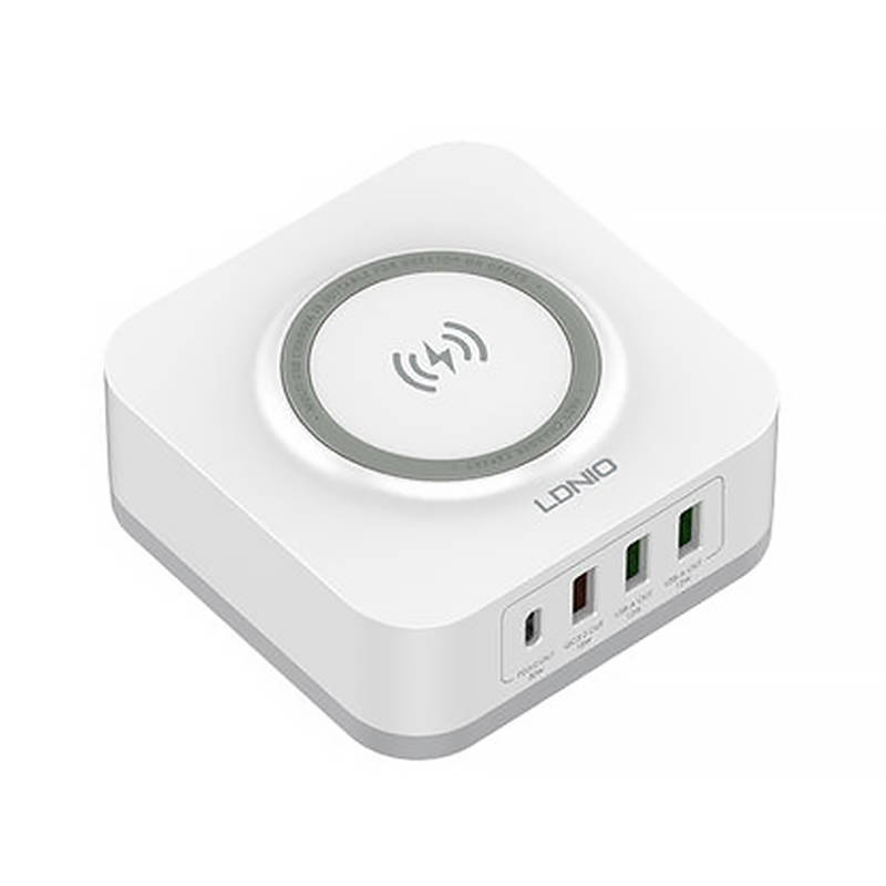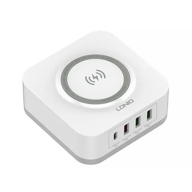 LDNIO AW004, 3x USB + USB-C, 32W (bel) brezžični indukcijski polnilec