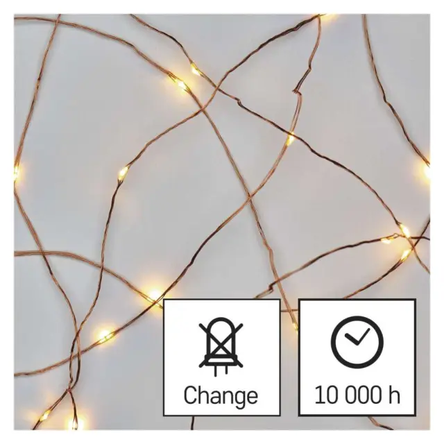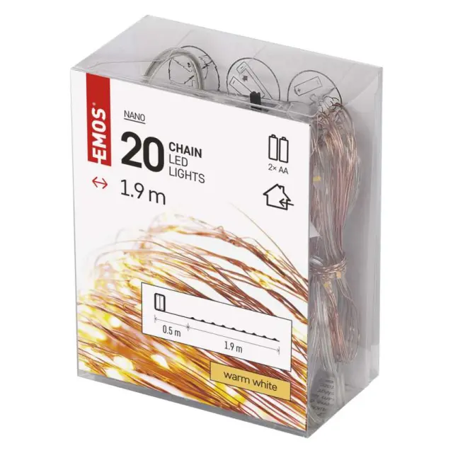 LED božična nano veriga, 1,9 m, 2x AA, notranja, topla bela, časovnik